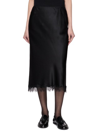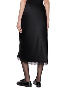 Defined by a refined, lingerie-inspired lace trim, this skirt by R2W is framed sculpts the body with quiet sensuality. Fluid and elongated, it transitions seamlessly from evening elegance to layered daytime looks.
