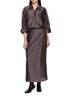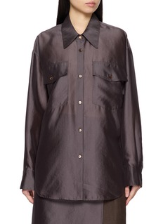Rendered in airy organza, this shirt by R2W reinterprets classic utility codes through a refined, translucent lens. The relaxed silhouette and subtle sheen create depth and lightness, making it an elegant layer over camisoles or tailored separates.
