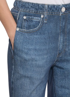 • Mid rise, relaxed fit, with a wide leg