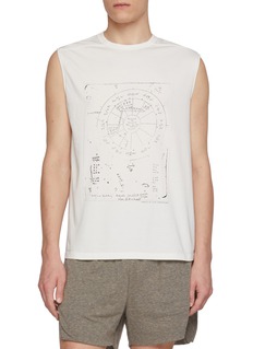 Rick Owens presents a sleeveless top with mystical diagram print and "Temple of Love" text for conceptual expression. The relaxed silhouette with crew neckline and dropped armholes delivers effortless layering ease, while intricate geometric graphic and artisanal sketch detailing create a statement piece for avant-garde, expressive styling.