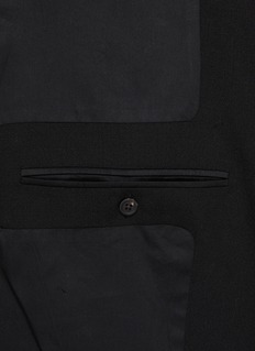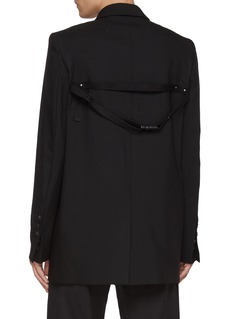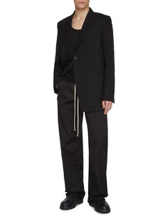 Rick Owens redefines tailoring with the Concordian blazer, sculpted in refined grain de poudre wool for a crisp yet fluid drape. Elevated with an unexpected strap detail at the back, it fuses classic suiting codes with subversive utility. A piece that slips easily from structured officewear to avant-garde evening styling.