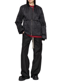 This Rick Owens x Moncler jacket redefines urban utility with its sculptural quilting and strap detail that allows the jacket to be carried over the shoulder. The matte black finish and minimalist design create a bold, architectural silhouette, perfect for layering with an avant-garde edge.