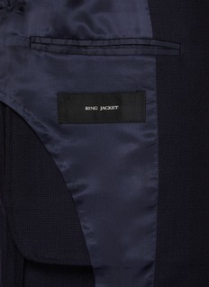 Craft an impeccable look with this Ring Jacket in a rich blue hue. Expertly tailored for a clean, modern fit, this jacket boasts a crisp structure that complements any ensemble. The dark blue shade offers versatility, while the notched lapels and minimalist button closure lend a touch of classic refinement. Ideal for business or leisure, it pairs seamlessly with varied attire, ensuring a polished appearance for any occasion.