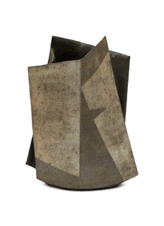 Immerse yourself in the world of modern art with this exceptional vase created by Robert Yellin. Embodying a bold geometric design, this piece features sharp, angular lines and a subdued gray palette that accentuates its contemporary aesthetic. Each facet of the vase captures light and shadow uniquely, making it not just a vessel for flowers but a standalone sculptural statement in any space.