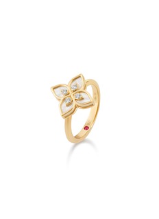 ROBERTO COIN - Princess Flower 18K Gold Diamond Mother Of Pearl Ruby Ring — EU 51