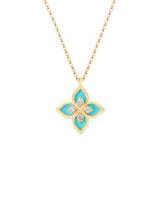 ROBERTO COIN Princess Flower 18K Gold Diamond Ruby Enamel Necklace