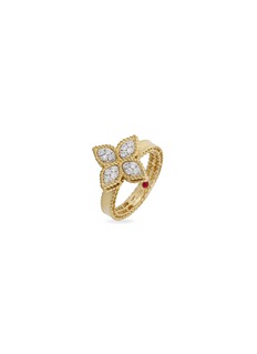 ROBERTO COIN - Princess Flower 18K Yellow White Gold Diamond Ruby Ring — EU53