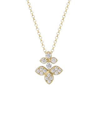 Delicate yet luminous, this necklace captures a refined expression of romance through a floral pendant suspended from a fine gold chain. From Roberto Coin’s Tiny Princess collection, diamonds trace gentle brilliance while a hidden ruby offers an intimate finishing touch, perfect for everyday elegance or layered styling.