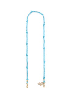 A playful strand of turquoise glass beads lends Rosantica’s Codette Strap a sun-washed charm. Finished with polished gold-toned clasps and a signature charm detail, it brings artisanal lightness to bags or eyewear—ideal for holiday styling or elevating everyday looks.