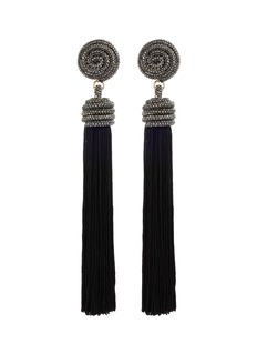 Bold elegance in motion. These Legame earrings from Rosantica feature a spiral-wrapped stud atop a cascading tassel, blending intricate craftsmanship with dramatic flair. The contrast of textured metal and fluidity creates a striking statement, perfect for adding a touch of sophistication and movement to any ensemble.