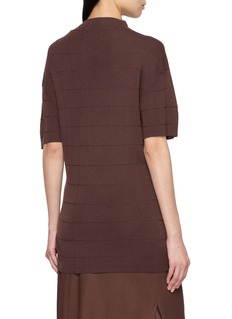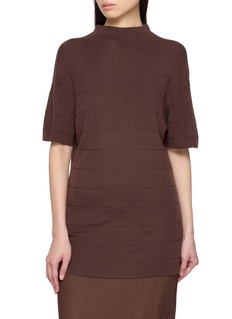This Ruohan top is a masterpiece of understated elegance, crafted from a luxurious, finely textured fabric in a rich chocolate hue. The top features a sophisticated high neckline and short sleeves, making it a versatile piece for both office and evening wear. Its straight fit and structured grid pattern add a touch of modernity, emphasizing its sleek and contemporary design.