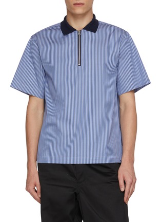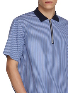 A directional take on a classic sports silhouette, this polo shirt reflects sacai’s talent for reengineering familiar forms. Crisp striped cotton poplin is cut into a subtle balloon shape, finished with a zip-up front that sharpens everyday looks with architectural ease.