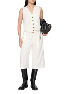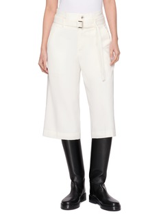The sacai culottes boast an unconventional edge with their streamlined silhouette, layered waistband and cropped length. The adjustable belt accentuates the waist, blending utilitarian flair with avant-garde design. A standout piece for those who embrace innovative, statement-making style.