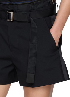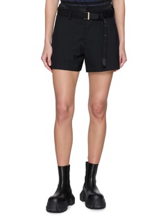 Elevate your wardrobe with sacai's belted shorts, a sophisticated blend of classic tailoring and contemporary design. These hybrid shorts feature contrasting fabric for a unique twist.