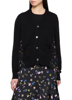 SACAI Bifabric Floral Panel Cotton Knit Cardigan
