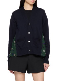 SACAI Bifabric Floral Panel Cotton Knit Cardigan