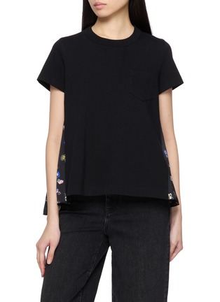 SACAI - Bifabric Floral Panel Cotton T-Shirt