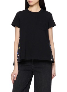 SACAI Bifabric Floral Panel Cotton T-Shirt