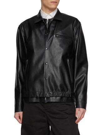 Rendered in smooth calfskin, this jacket distils sacai’s layered ethos into a refined leather silhouette. The clean button-up front is offset by a subtle layered hem, lending depth and modernity to a timeless wardrobe essential—ideal for elevating everyday tailoring or monochrome looks.