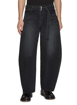 This sacai jeans redefines utilitarian style with its oversized, baggy silhouette and adjustable belted waist, blending functional details with avant-garde comfort. The dark wash denim and relaxed fit create a bold, contemporary statement for modern wardrobes.