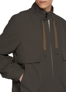 Crafted with sacai’s refined sense of utility, this zip-up jacket is defined by its clean lines and understated drawstring detail. The structured weather cloth lends a composed silhouette, ideal for layering over casual or tailored looks in changing conditions.