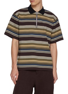 Recasting retro sportswear through a contemporary lens, this polo channels sacai’s signature hybridity with precision. Horizontal stripes bring graphic rhythm to crisp cotton poplin, while the zip-up neckline sharpens the silhouette for effortless, modern layering.