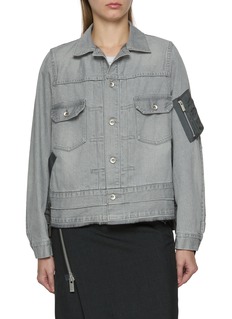 Contrasting textures collide in this jacket, where rugged denim meets nylon to create sacai’s signature hybrid language. The button-up silhouette is layered with a fluid drape at the back, shifting the classic denim jacket into a contemporary statement of utility.