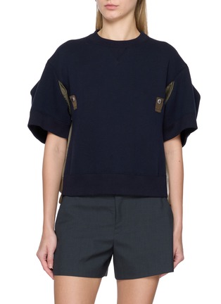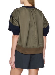 sacai showcases its iconic hybridised design with this expertly crafted top. Combining elements of contrast with its classic silhouette, this piece is also punctuated with popper details and a striking bicolour palette.