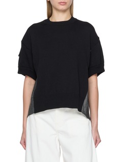 A deconstructed contrast piece by sacai, where classic meets contemporary. This piece reimagines this top with a boxy fit and kimono sleeves, while the contrast denim back panel introduces an unexpected twist.