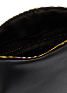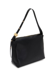 This crossbody bag merges urban functionality with contemporary contrast, pairing a sleek leather base with gold-toned hardware for an added touch of luxury. A versatile statement piece for the modern wardrobe.