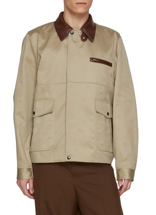 SACAI - Leather Trim Zip Up Cotton Chino Jacket
