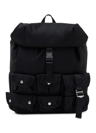 Experience the perfect blend of functionality and style with the SACAI backpack. This meticulously designed piece features a robust, weather-resistant black fabric that ensures durability and protection for your essentials. The backpack is equipped with multiple external pockets, each secured with snap closures, offering ample storage and easy access.