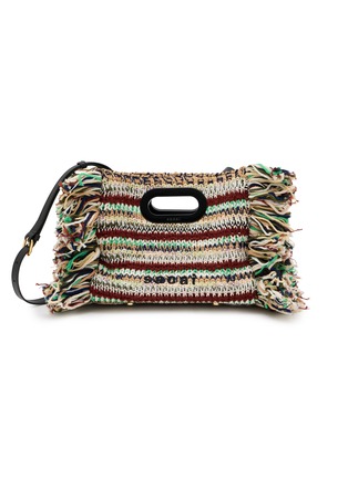 Sacai’s iconic shopper reimagined in a vibrant multicolor knit, elevated with delicate fringe details for artful texture. Featuring an intarsia logo woven on both front and back, it comes with a removable leather shoulder strap for versatile styling, a single spacious open interior, and polished oval metal handles for elegant hand carry—where Japanese avant-garde design meets everyday luxury.