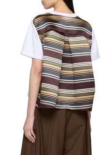 SACAI Striped Panel Cotton Jersey T-Shirt