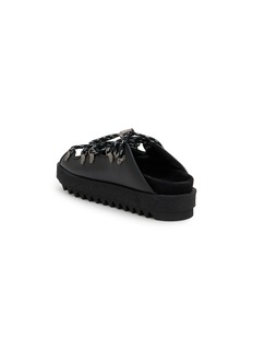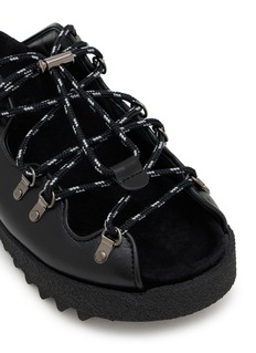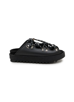 These Treck Slides from sacai redefine casual footwear with their hybrid design, blending utilitarian laces and a sporty strap over a chunky, textured sole. The layered details deliver sacai’s signature fusion of functionality and avant-garde style. Perfect for making a statement with every step.