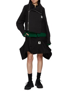 sacai's collaboration with Carhartt WIP redefines utilitarian style, merging the rugged functionality of Carhartt's iconic duck fabric jackets with sacai’s innovative design elements. Detailed with a bold asymmetrical zipper and plush ribbed knit, this jacket is sure to become a go-to option for the colder season.