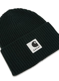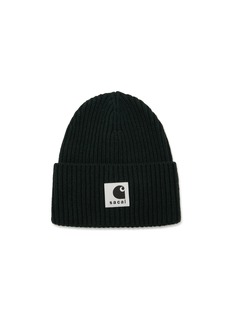 This beanie blends sacai’s innovative knitwear with Carhartt WIP’s rugged utility. The half-cardigan structure, thick tuck stitches on one side, standard knit on the other, creates a unique texture, while the co-branded woven label adds a subtle signature.