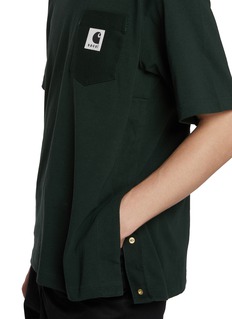 sacai's collaboration with Carhartt WIP redefines utilitarian style, merging the rugged functionality of Carhartt's iconic duck fabric jackets with sacai’s innovative design elements. The collection offers a fresh perspective on classic silhouettes, making it a must-have for those who value both durability and design.