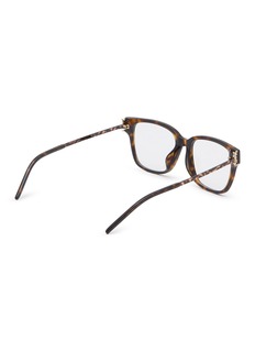 Elevate your eyewear collection with these Saint Laurent optical glasses, featuring a refined tortoiseshell pattern and a classic square frame. These glasses are accented with the iconic YSL logo on the arms, combining luxury with a touch of modern sophistication. Perfect for those who value style and quality, these frames provide a comfortable fit and a fashionable edge to any look, ensuring you stand out with understated elegance. Ideal for daily wear, they enhance both professional and casual outfits effortlessly.