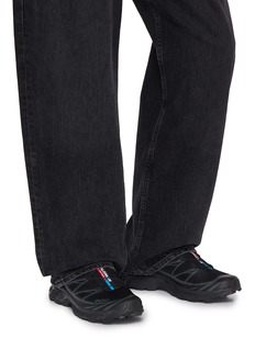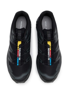 Salomon's XT-6 Advanced sneakers showcase trail-running excellence with stealthy monochromatic design. The performance silhouette features breathable mesh upper, tonal reinforced overlays, signature Quicklace™ system with vibrant multicolor toggle accent, cushioned EnergyCell midsole, and aggressive Contagrip® outsole. Technical precision meets contemporary urban edge.