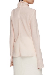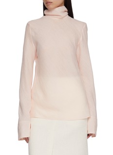 This beautifully understated pale pink turtleneck sweater from Lane Crawford showcases subtle sophistication. Crafted from a delicate, finely textured fabric, it features a soft turtleneck and long sleeves that make it ideal for layering during the cooler months. The sweater's light hue offers a fresh alternative to the traditional neutrals, making it a standout yet versatile piece in any wardrobe.