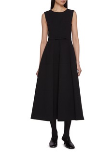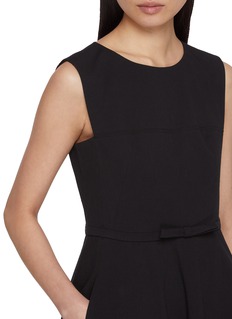 This elegant black dress, available at Lane Crawford, is a true embodiment of timeless sophistication. Designed with a fitted bodice and a gracefully flared skirt, this piece highlights a classic silhouette that flatters the figure. The sleeveless design and crew neckline add a touch of modern simplicity, while the subtle waist belt detail with a bow accentuates the waistline, providing a refined and delicate touch.
