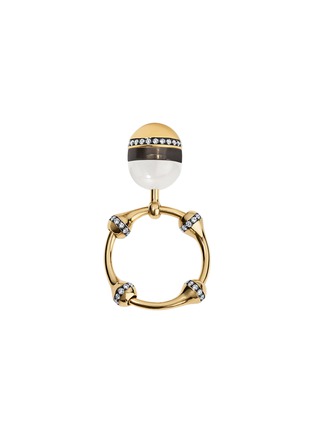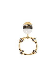 From the Pod collection, this 18K gold ring features sliding moonstone and smoky quartz stones, with a lower dome edged in pavé-set diamonds. With a taste for constructed technique and an eye for detailed ornamentation, Sarah Eisman Studio's design is where aesthetics meet engineering.