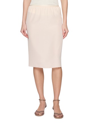 Elevate your wardrobe with the Sharon Wauchob pencil skirt, a staple of understated elegance. This skirt is crafted in a smooth, luxurious fabric in a versatile beige hue that complements any color palette. Its sleek, streamlined silhouette is tailored to flatter, offering a classic fit that sits comfortably at the waist and extends to a refined knee-length.