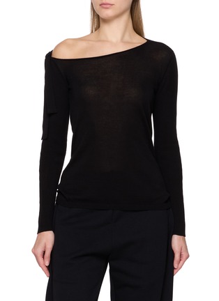 Sharon Wauchob’s designs are distinguished by their experimental approach to materials and fabric manipulation, often incorporating pleats, drapery, and refined details that express an unconventional elegance. This top is cut from a delicate knit, featuring a reversible tie-front that shifts between a boat neck and a V-neck, sculpting the silhouette while revealing a subtle sensuality.