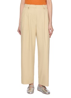 These Sienne trousers reinterpret tailored ease through washed cotton, giving the fabric a softened hand and understated patina. Defined by front pleats and a gently structured wide leg, they bring relaxed refinement to warm-weather dressing—ideal with knits, tanks, or crisp shirting.