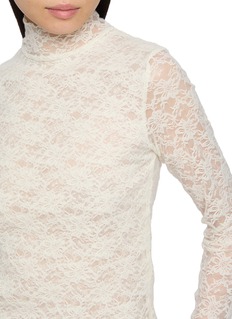 An ode to delicacy, this Sienne top is crafted from fine French-inspired lace that traces soft florals across the skin. Its high neckline and layered hem lend quiet structure, contrasting the sheerness with subtle depth. Wear it as an elegant standalone piece or layered under tailoring for a refined textural play.