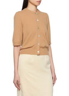 A poetic mix of softness and flourish, this Sienne cardigan is spun from a wool–cashmere blend that feels quietly luxurious against the skin. Sheer ruffled sleeves introduce a sculptural lightness, contrasting the classic buttoned silhouette—an elegant layer that elevates both refined and casual pairings.