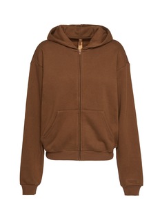 Effortless comfort for every day. This dreamy zip-up hoodie is crafted with SKIMS' signature, plush fleece and a smooth embossed logo on the left sleeve above the cuff. This classic fit pullover features a front kangaroo pocket and ribbed details on the cuff and hem.