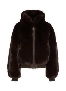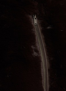 Make a soft, cosy statement. This faux fur zip-up jacket combines a smooth, satin lining with chic faux leather trim details. Front welt pockets keep you warm while ribbed details at the cuff and hem add an elevated finish.